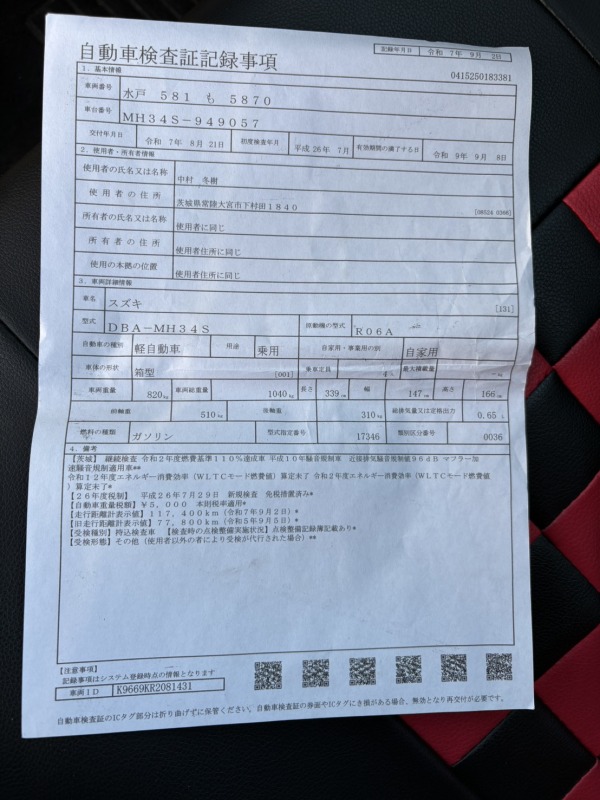 ※見積もりコンピューターで算出する際に車検証のデーターが必要になります。